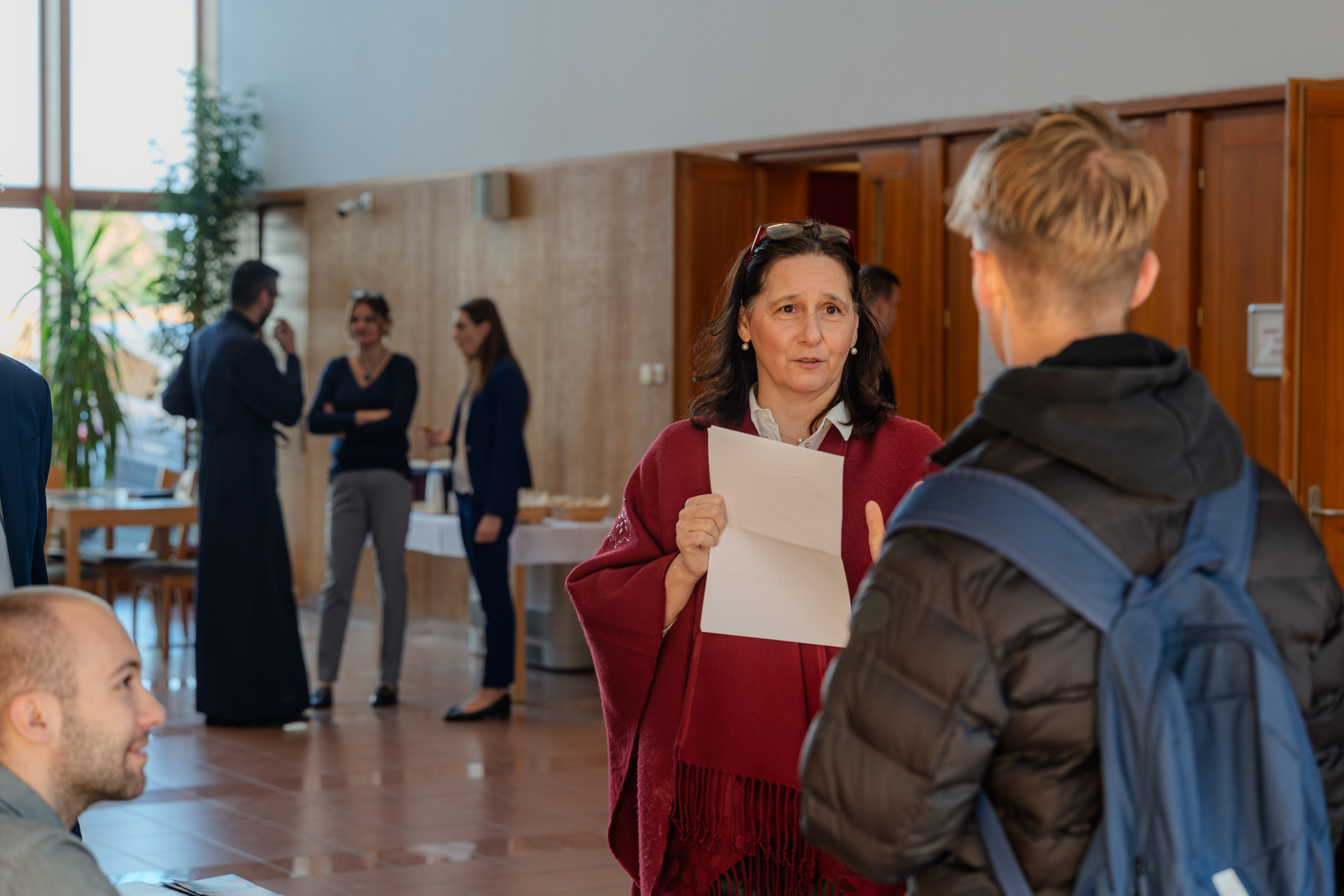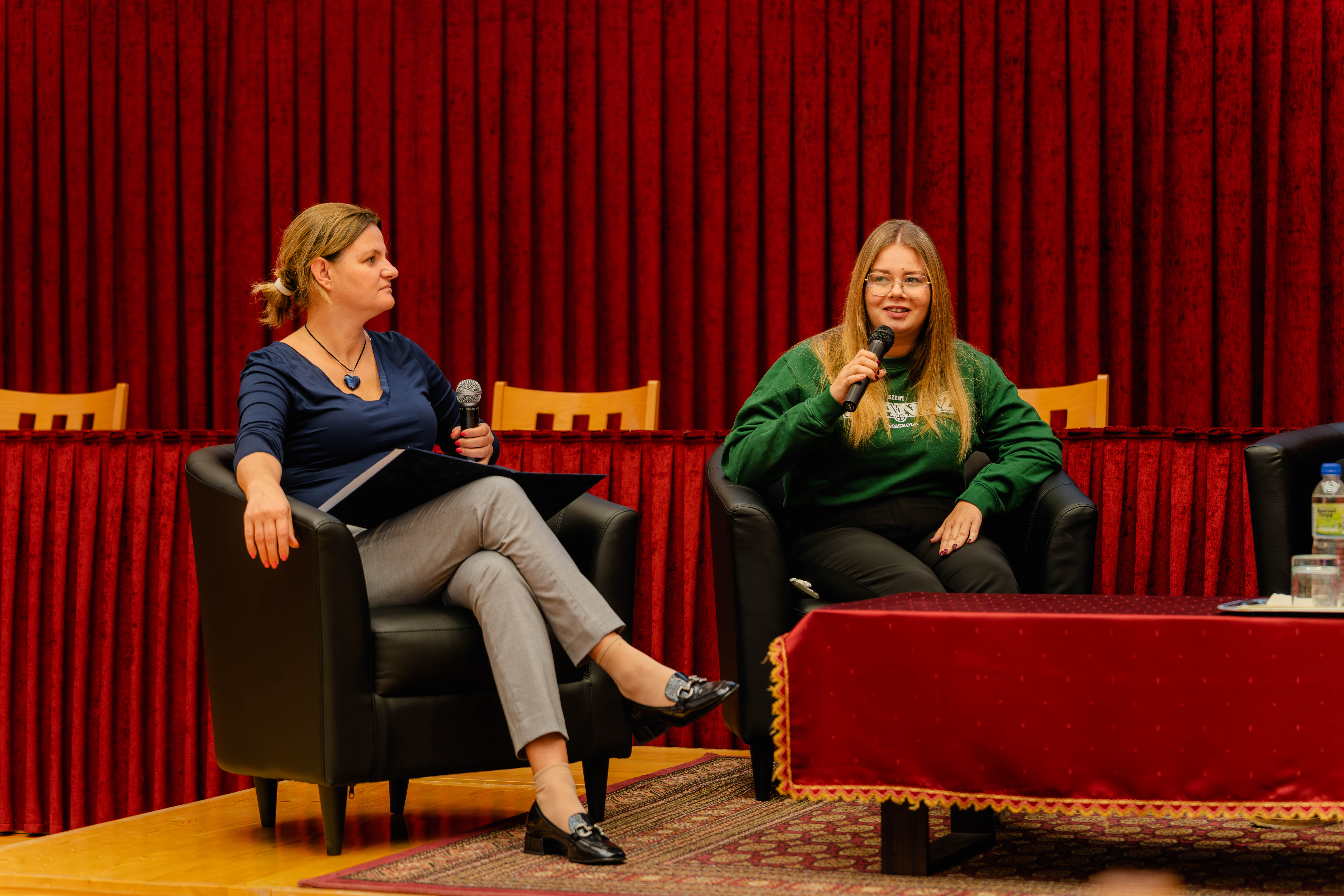 A program egyik leginteraktívabb része a kerekasztal-beszélgetés volt. Résztvevői – Koszta János I. éves papnövendék, Fazekas Márton IV. éves papnövendék, Makai Viktória IV. éves hittanár-nevelőtanár szakos hallgató és Vajda Zsanett V. éves hittanár-nevelőtanár szakos hallgató – a személyes tapasztalataikon és élményeiken keresztül segítettek megismertetni a főiskolai életet és kapaszkodókat nyújtottak a diákoknak a döntéshozatalban. Szó esett a főiskolára vezető útjukról, a tanulmányok és a lelki élet egyensúlyáról, valamint a közösségi programokról is.