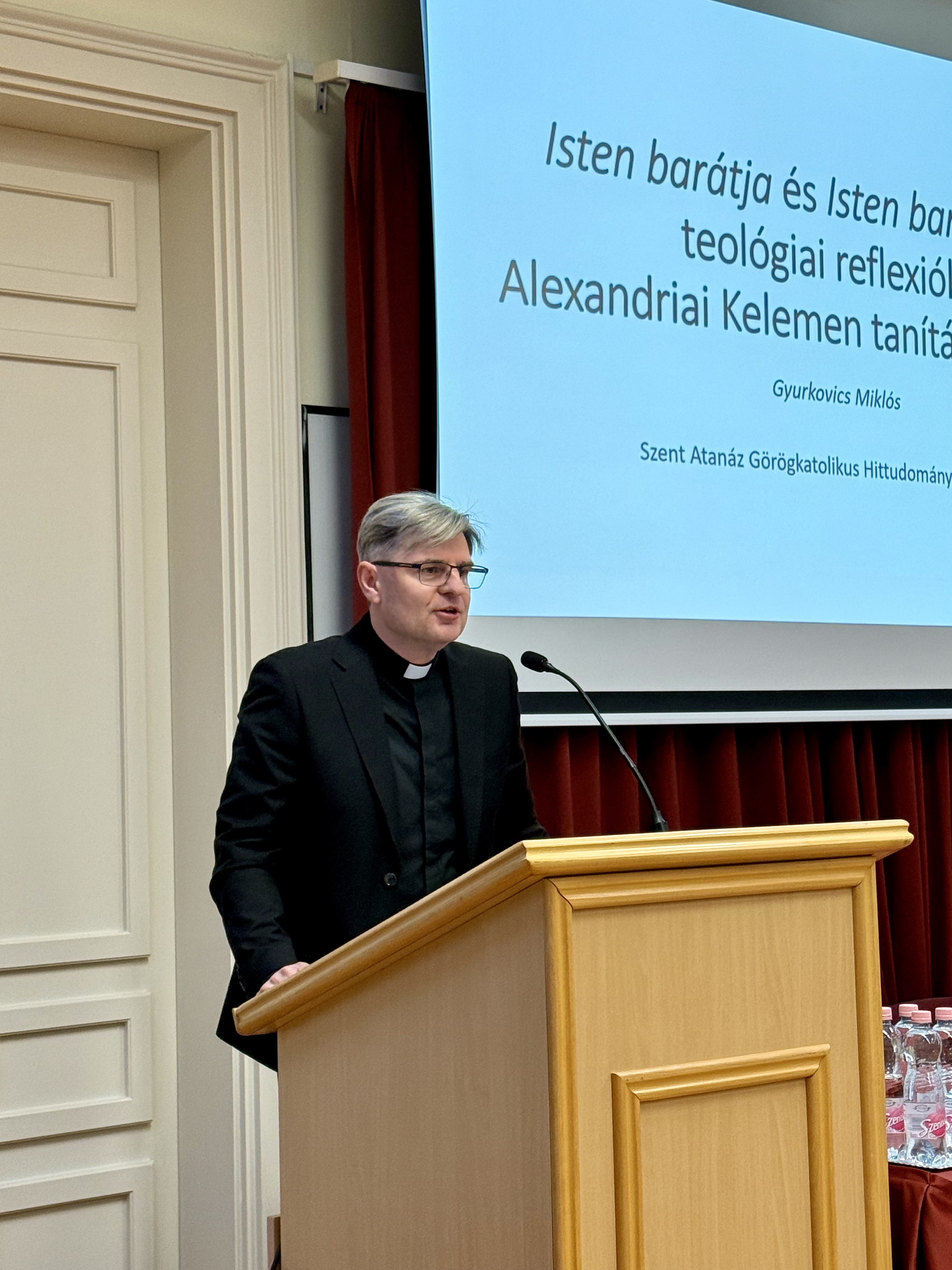 Dr. Gyurkovics Miklós Isten barátja és Isten barátsága: teológiai reflexiók Alexandriai Kelemen tanítása alapján című előadáásában arról beszélt, hogy miként alakította át Alexandriai Kelemen az evangéliumi tanítás fényében a platóni és az arisztotelészi eszméket a barátságról.